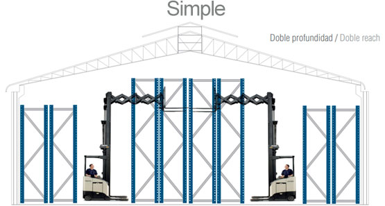 Se eliminan pasillos Permitiendo la circulación del montacargas hacia adentro de las líneas de almacenamiento. El sistema cuenta con niveles de guía sobre los cuales se soporta la carga
